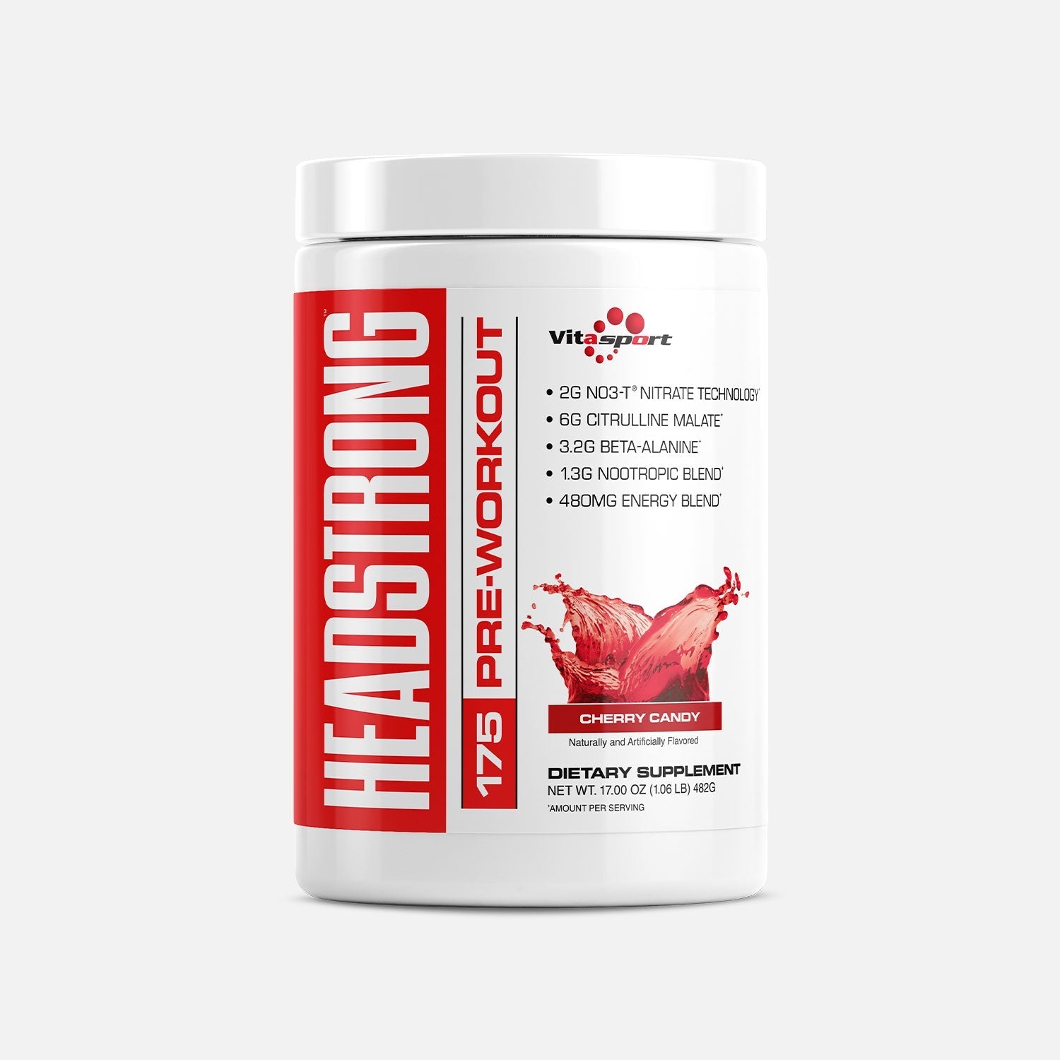 Introducing Headstrong 175 by Vitasport. This product is packed with all the same potent, in-demand pre-workout ingredients found in the increasingly popular Headstrong formula (we’re talking 2g N03-T® Nitrate Technology, 1.3g Nootropics, 6g Citrulline Malate, and 3.2g Beta-Alanine), but with only 175mg of caffeine and no other stimulants. You’ll still get all the pump, power, and focus you love, just in a “lower-stim” version.